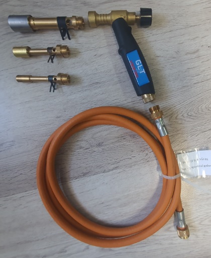 Składa się z rękojeści, trzech nasadek oraz węża łączącego rękojeść z butlą z gazem.