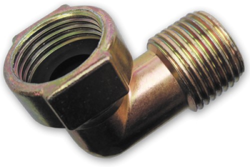 Łącznik kątowy z gwintem zewnętrznym 1/2″, gwintem wewnętrznym 1/2″ i uszczelką.