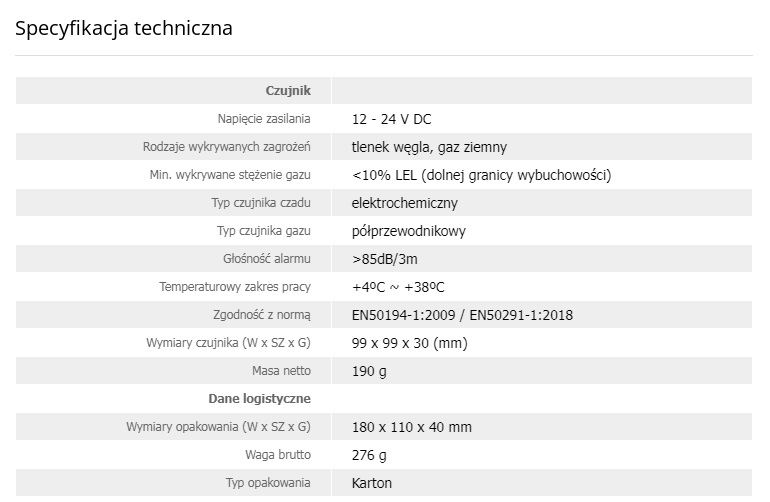 Po wykryciu niebezpiecznego stężenia tlenku węgla lub gazu w powietrzu, urządzenie generuje alarm akustyczny i optyczny.