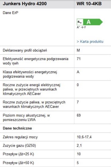 • klasa efektywności energetycznej podgrzewania wody A dla deklarowanego profilu obciążenia M• niska emisja NOx zgodna z wymaganiami Dyrektywy ErP