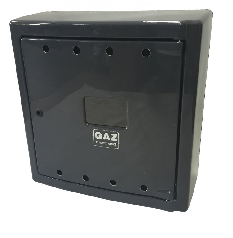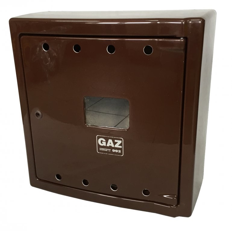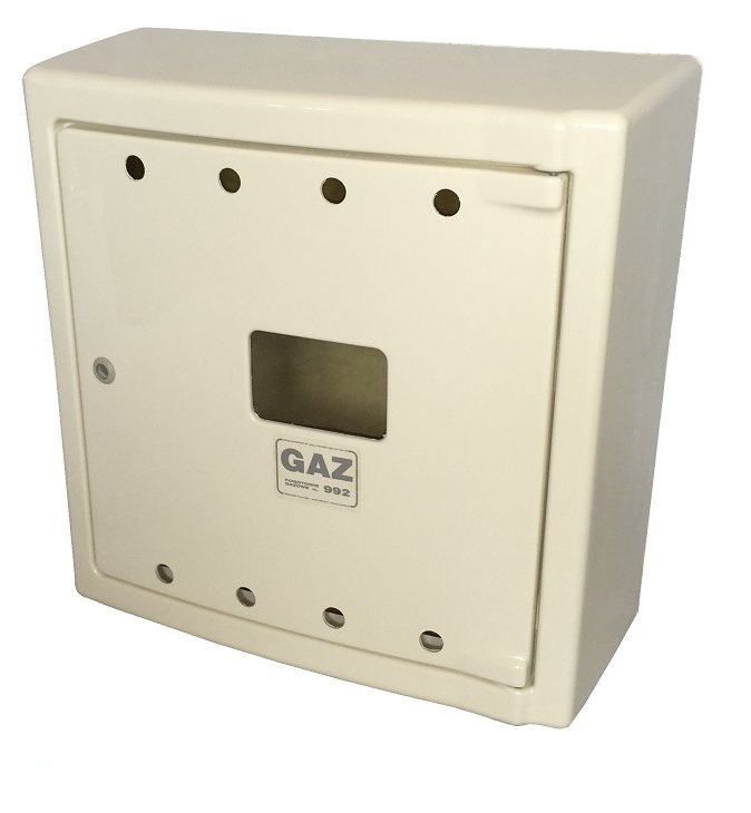 Obudowa z płaskim spodem wyposażona w specjalnie wyprofilowaną tylną ściankę do montażu na słupkach przy pomocy produkowanego przez naszą firmę zestawu montażowego. Płaski spód umożliwia montaż na postumencie.Na życzenie klienta obudowa może być również wykonana w wersji G-66S (ze stelażem do montażu uchwytu gazomierza).